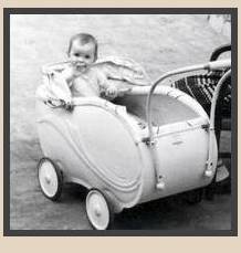 Abb: Petra Watzka, geb. Pohle, in ihrem Haus in Greencastle, Irland - 2. Abb: Der letzte Schrei der 1953er Kinderwagenmode!